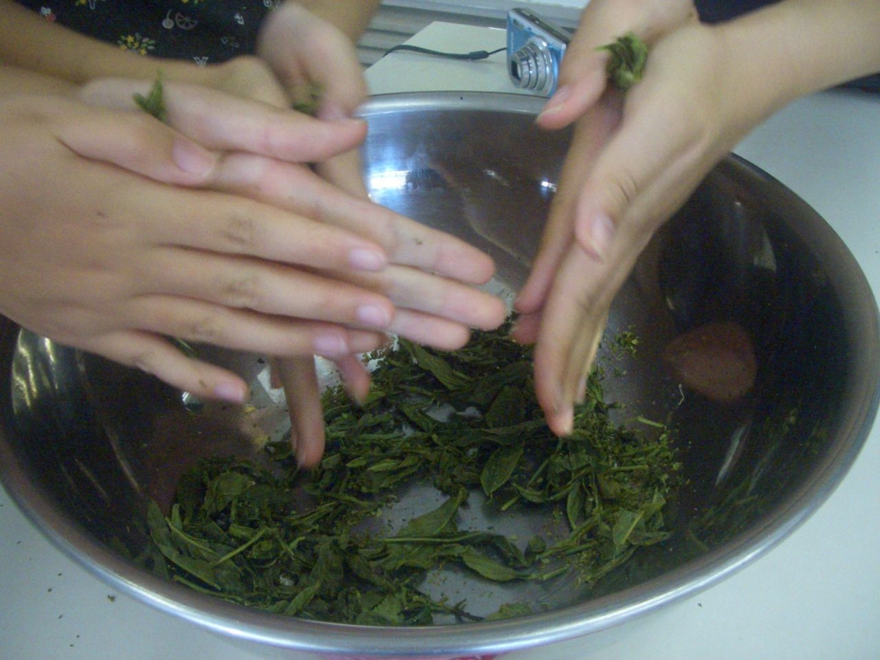 よく観察していると 茶の葉が だんだん乾いて縮れていきます。