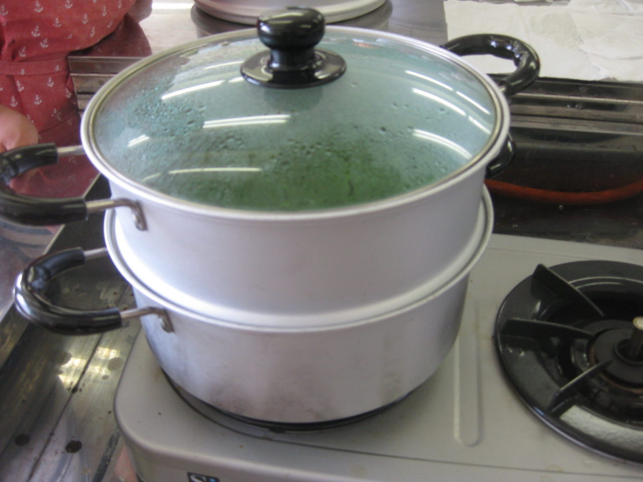 蒸しつゆが無くなるようにします。(うちわであおぐ)