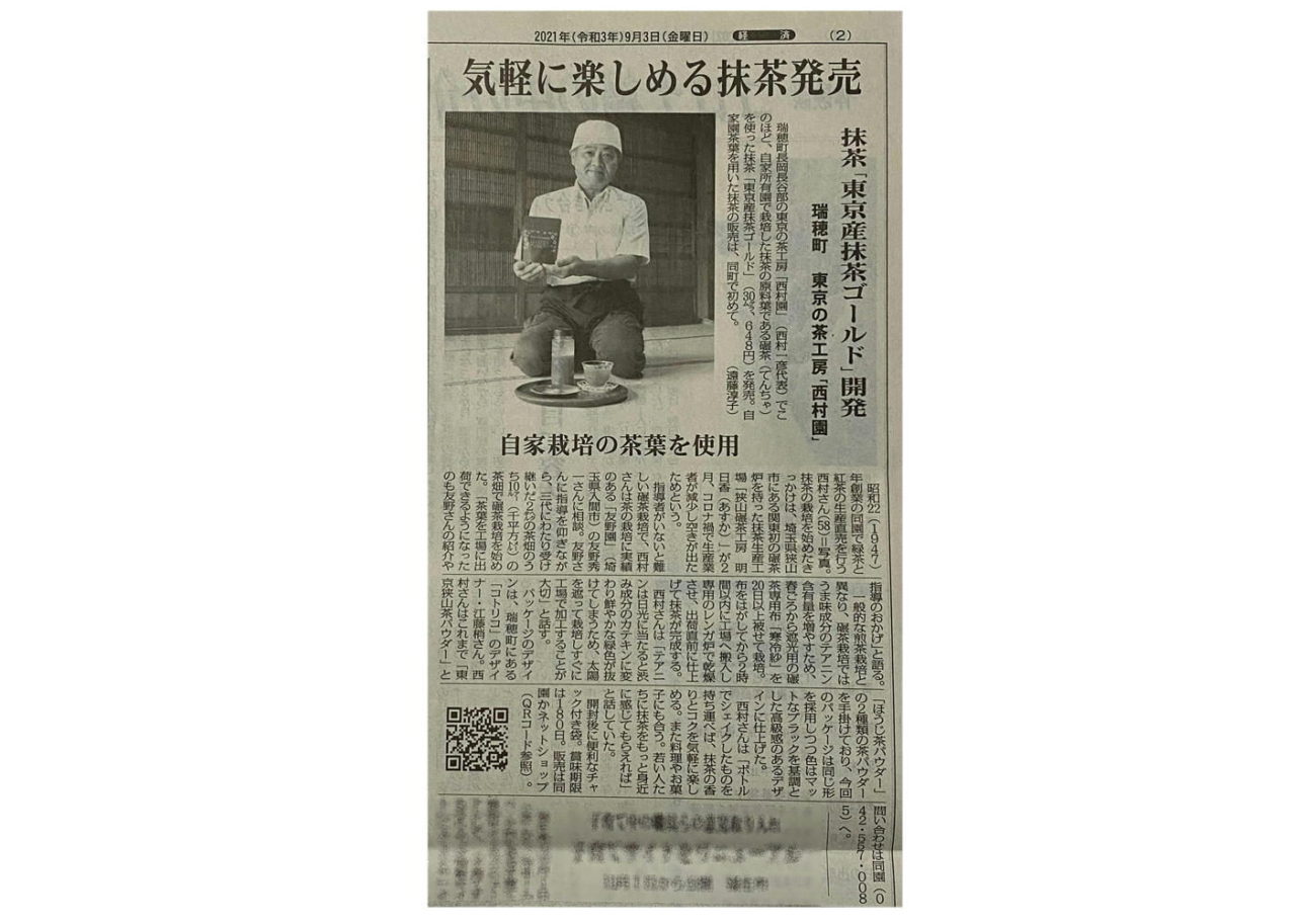9月3日発行の 西多摩新聞さんに記事を載せていただきました!
