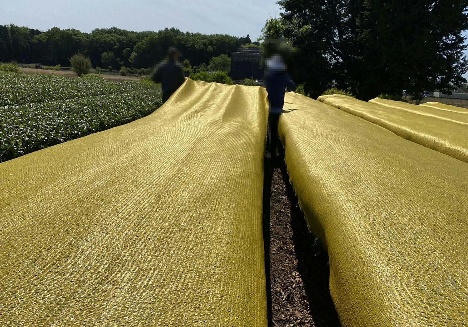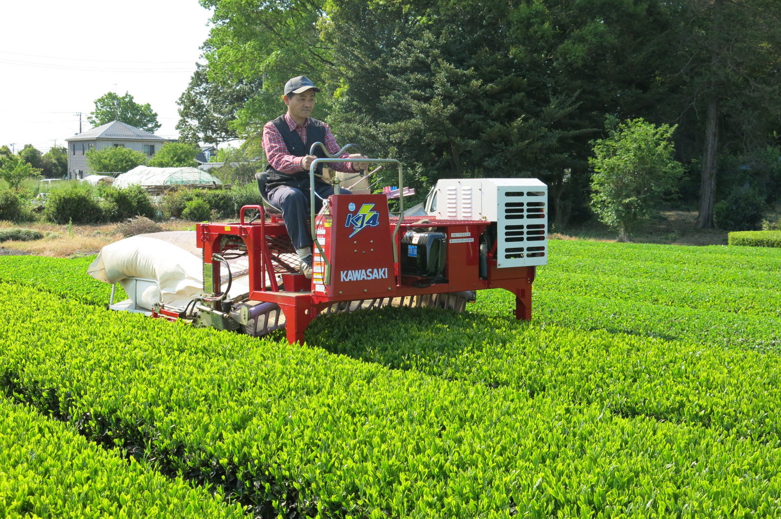 ※テレビ中継などで見るような着物を着て手摘みする作業ではありません。
