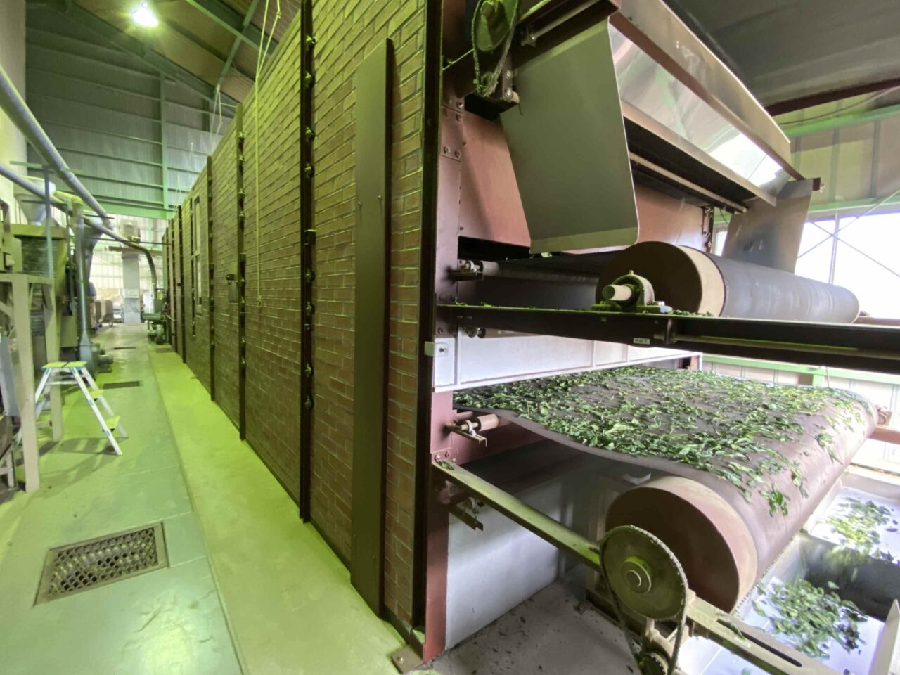 碾茶工場では専用のレンガ炉で乾燥させ出荷直前に仕上げて抹茶が完成します。